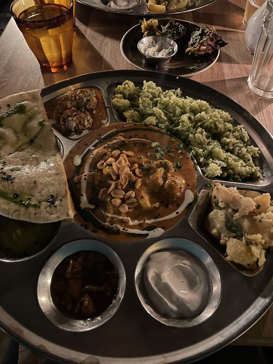 “We had a really lovely meal here, there is only one main dinner option being a thali that changes weekly. This was delicious and fun to try new things ;) The server was friendly and helpful, everyone around us seemed to be loving their meals and experience too. Looks small from the outside and is only a little bigger inside, so would recommend booking where possible. Restaurant is fully plant based but as a meat eater myself still very much enjoyed I’m sure we will be back!”