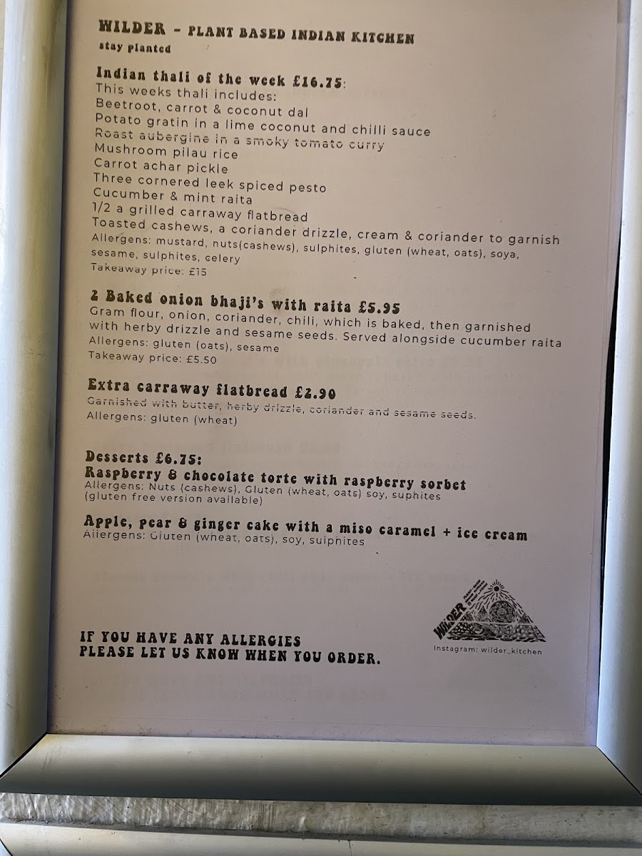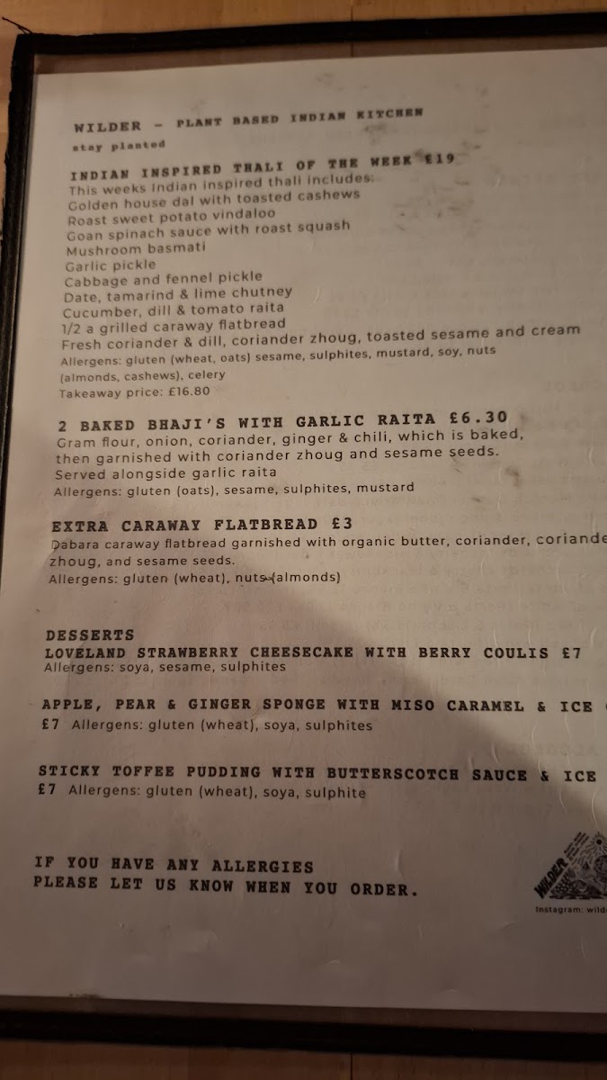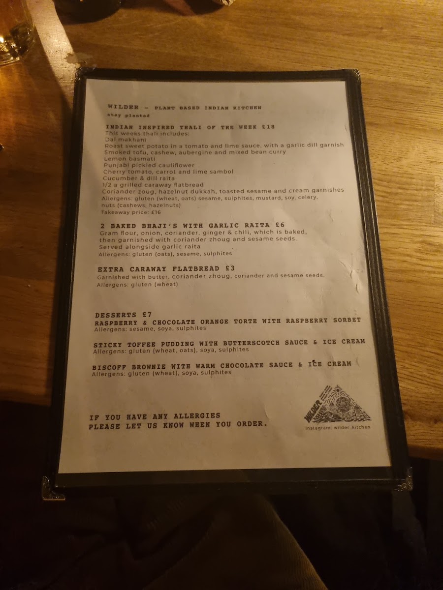 The menu at Wilder is a carefully curated selection of vibrant dishes made with locally sourced, seasonal ingredients. From spicy curries to comforting rice dishes, every plate promises a unique combination of bold spices and fresh vegetables. A standout is the "Jackfruit Tikka Masala," which replaces the usual meat with jackfruit, offering a tender texture and absorbing the rich, aromatic sauce beautifully. For a lighter option, try the "Cauliflower and Pea Samosas"-crispy on the outside, with a warm, fragrant filling inside.